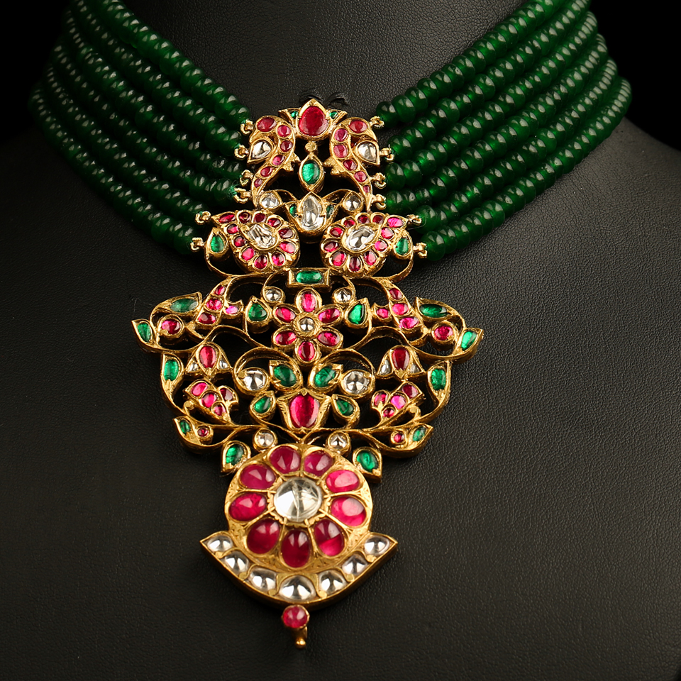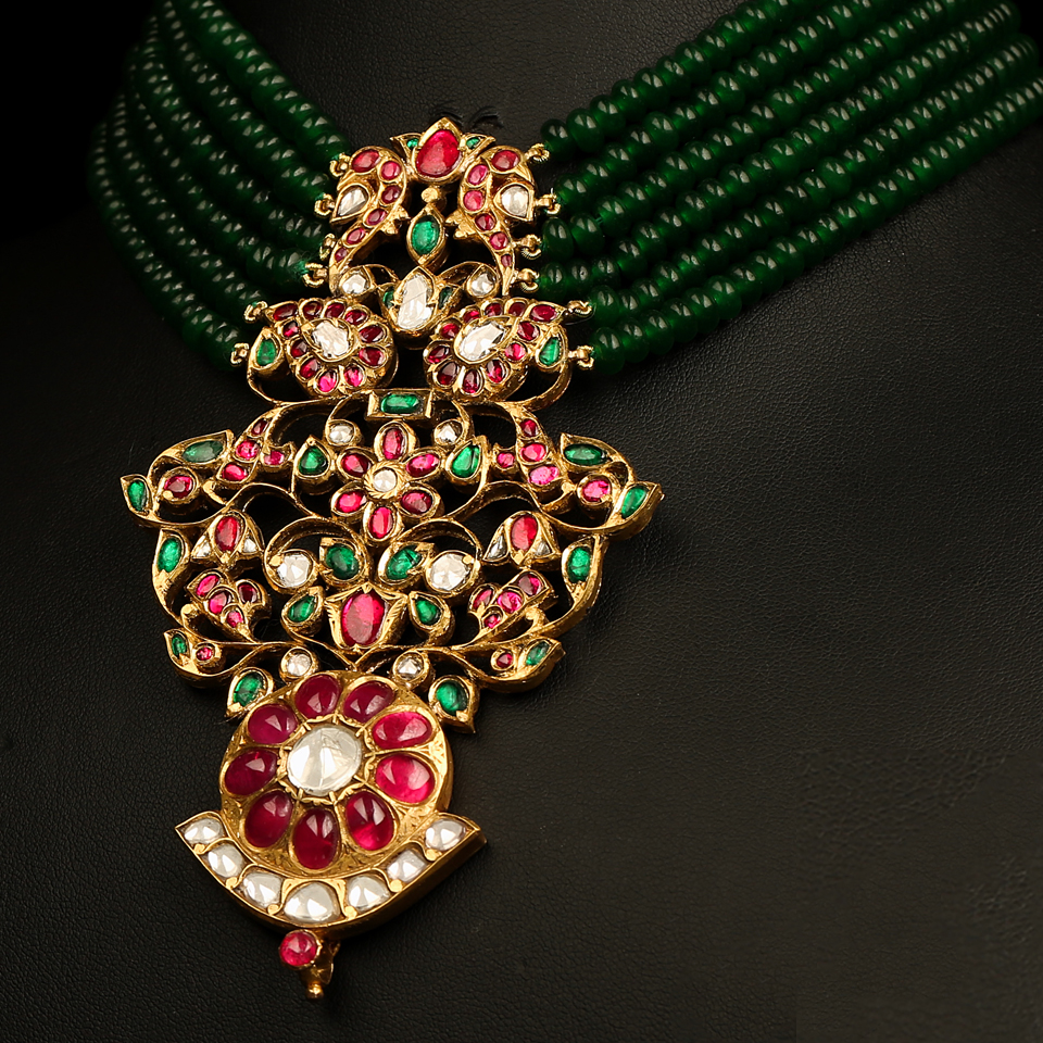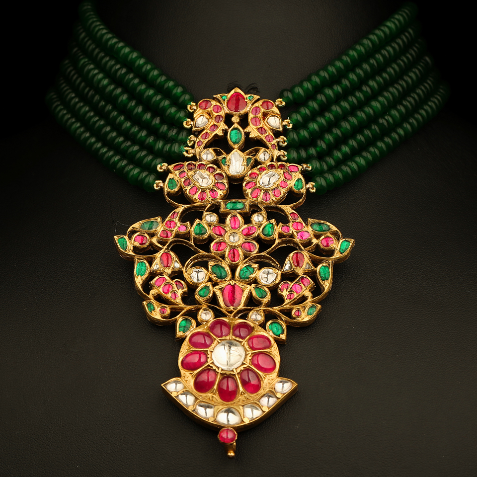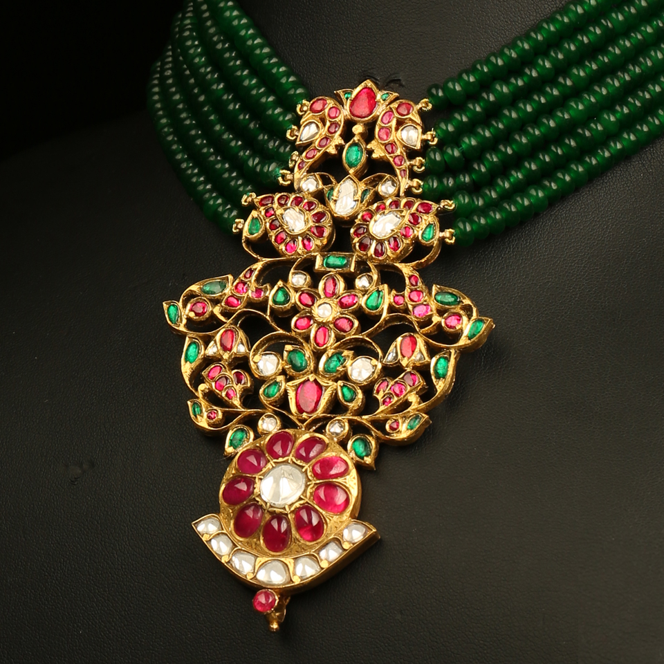 KMN 357h - Mayura Heirloom Ruby Pendant and Aventurine Choker