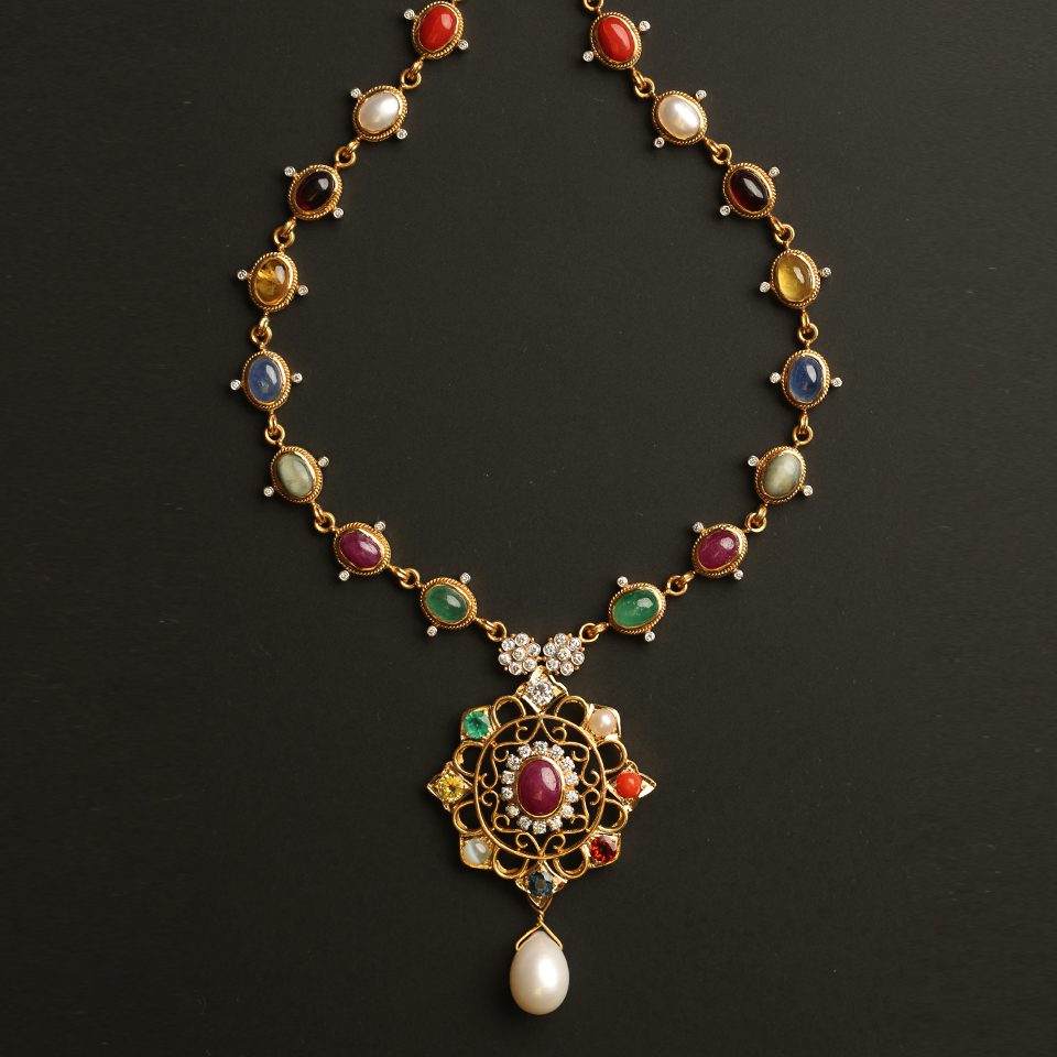 Home / Navratna / KMN 259 Navaratna HaramKMN 259 Navaratna Haram Category: Navratna Tag: Navratna Product ID: 110Related products KMN 167 Traditional Navaratna Pendant Enquire KMN 270 Contemporary Multicoloured Bead Necklace Enquire KMN 208 Bespoke Navaratna Pendant Enquire KMN 118 Antique Navaratna Padakkam Enquire