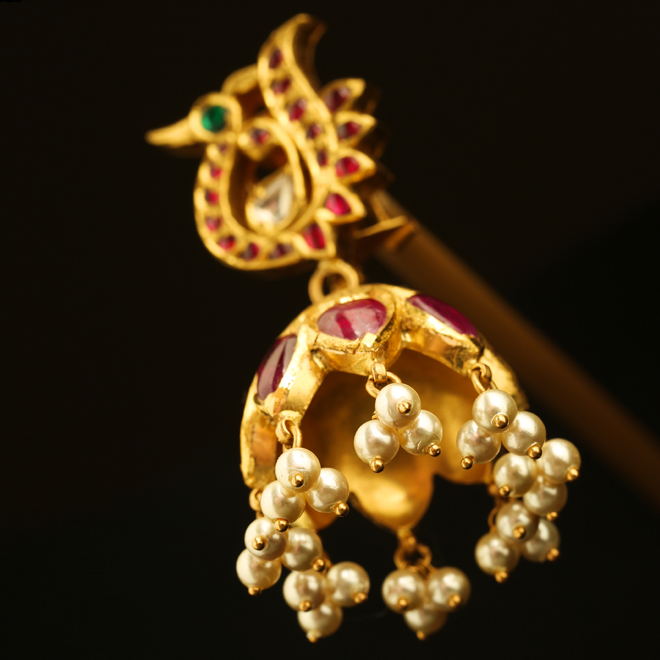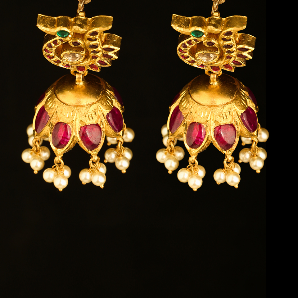 KMN 352e - Antique Ruby Jhumka