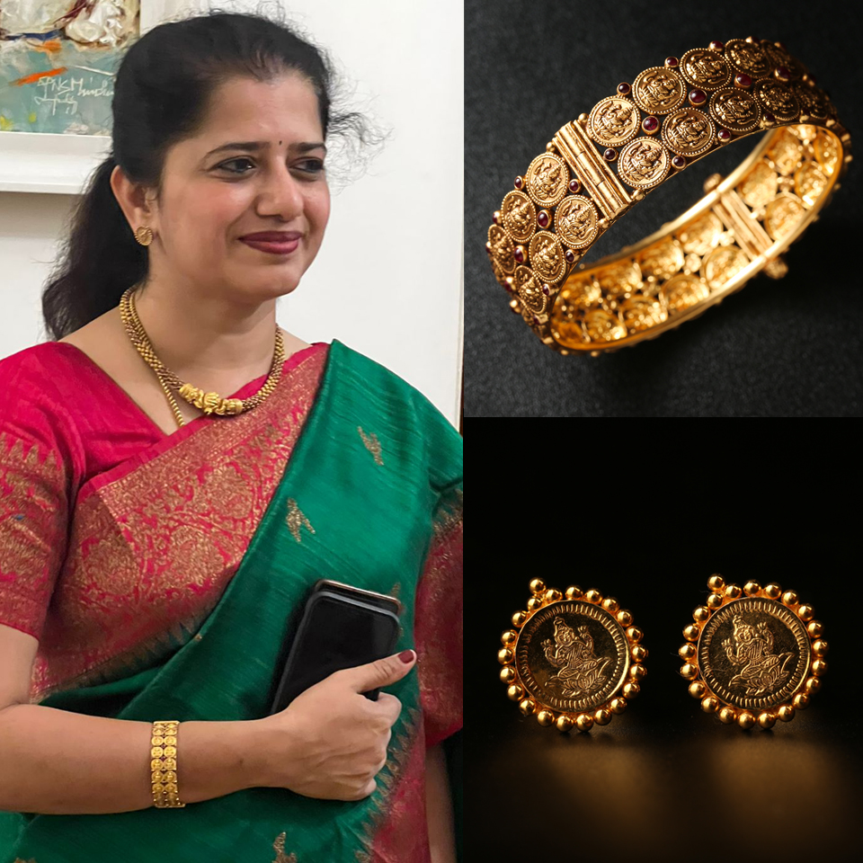 “The ‘Kaasu Maalai’ has always had a special place in every South Indian household. Thanks to Priya and Kamna Designs, I got to customise a beautifully handcrafted Kaasu Kada Bangle, beautifully paired with Kaasu Earrings. Very happy to have these in my collection. Thank you Priya for your patience 😊. You are truly a brand by a woman for us women 😊. Thank you..”